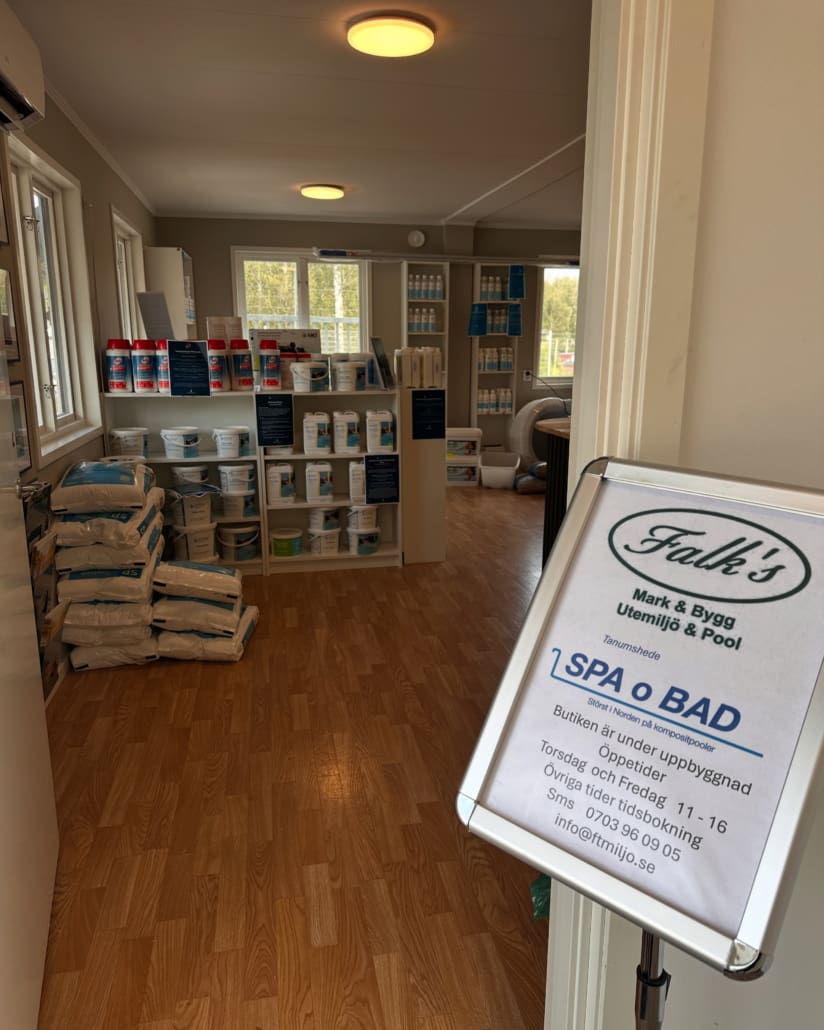Vi har nu kontor lager och en butik på Industrivägen 13 i Tanumshede Butik samt utställning är under uppbyggnad och kommer att uppdateras under vintern o våren 2026 ni är varmt välkomna redan nu och prata projekt inom Bygg Mark och Utemiljö samt pool.