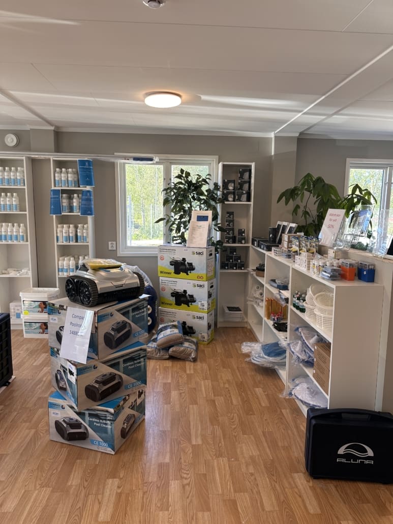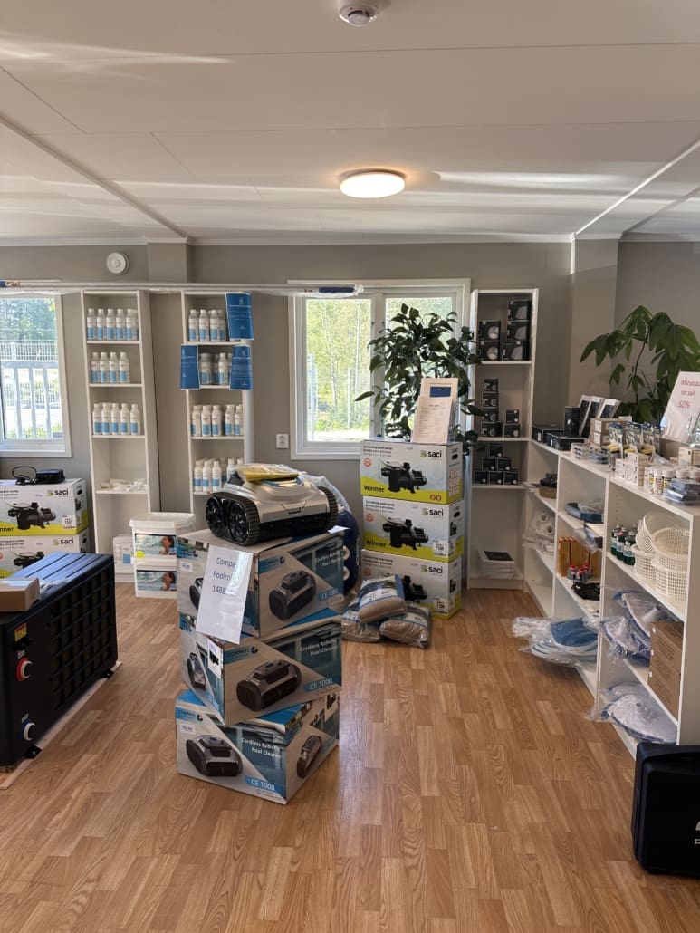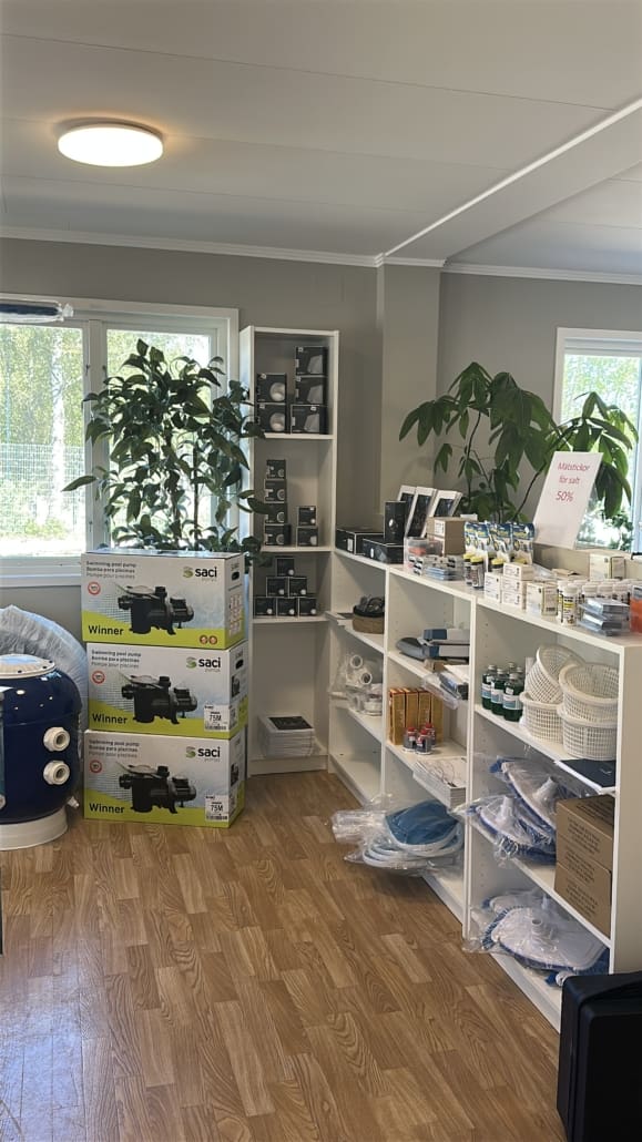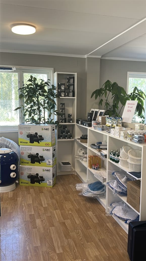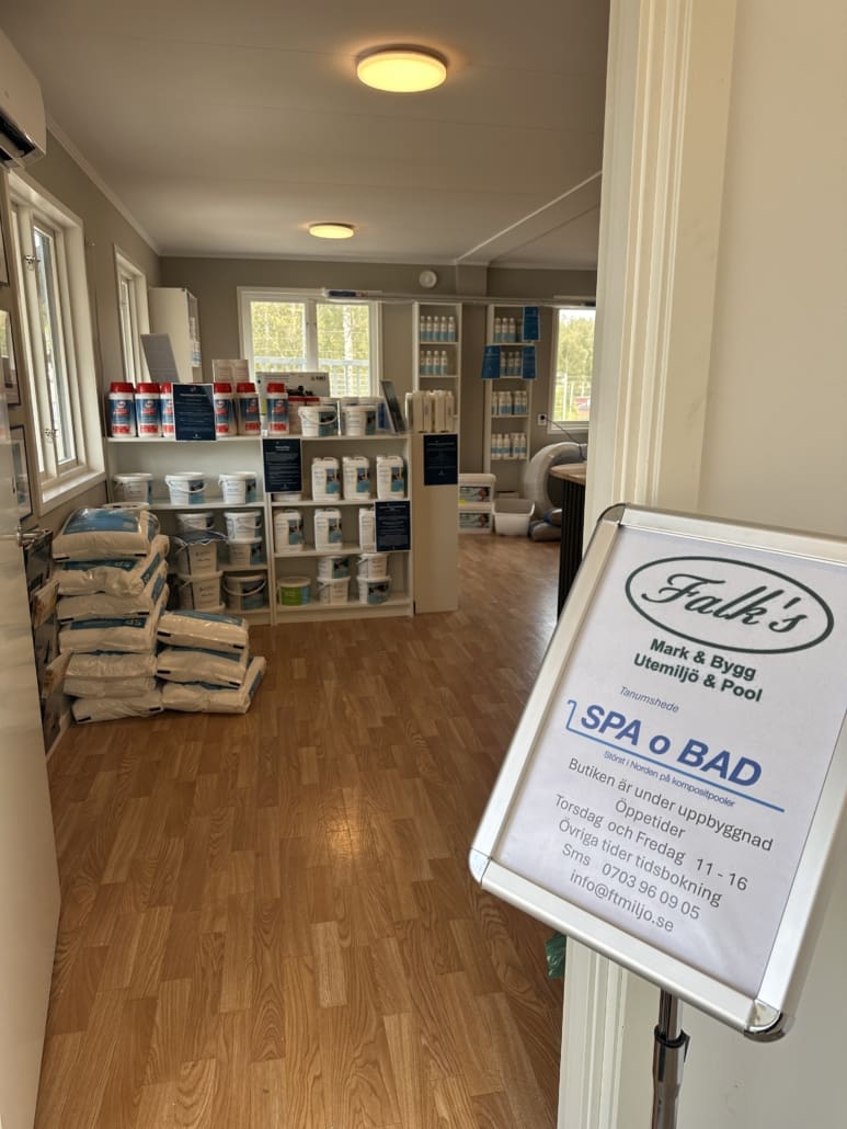 I vår utställning visar vi upp glasfiberpool, . Utbudet varierar i utställning under året Alla kommer från vår leverantör SPA o BAD. I butiken hittar du också tillbehör och kem för pool och spabad och lite annat som behövs .