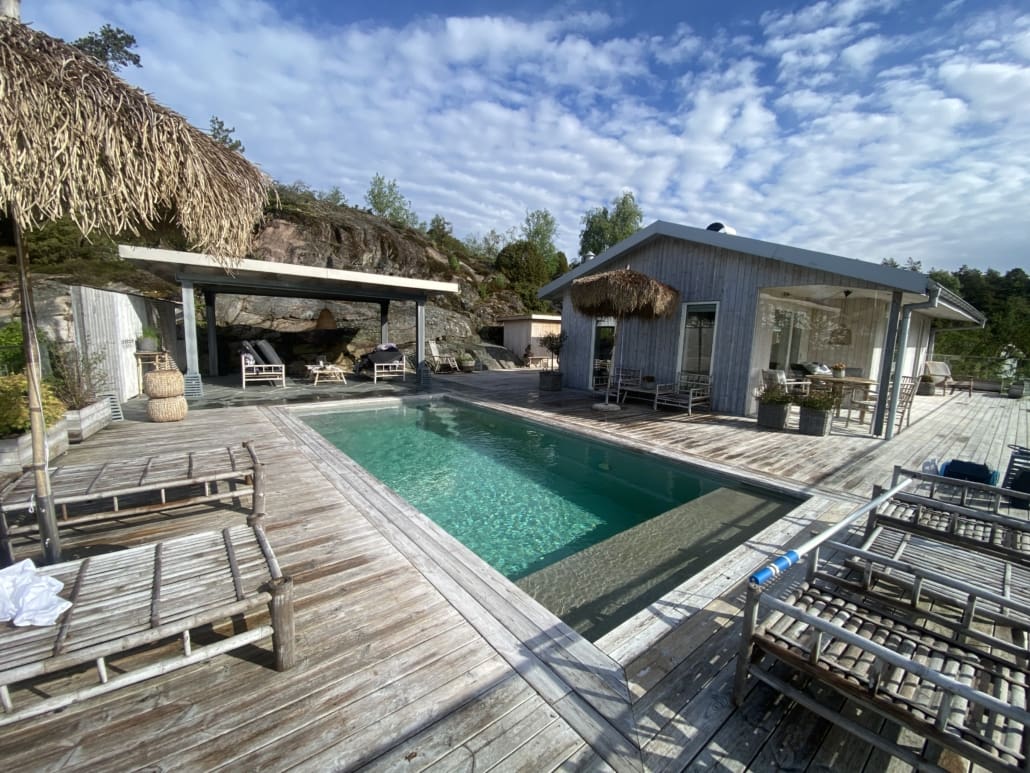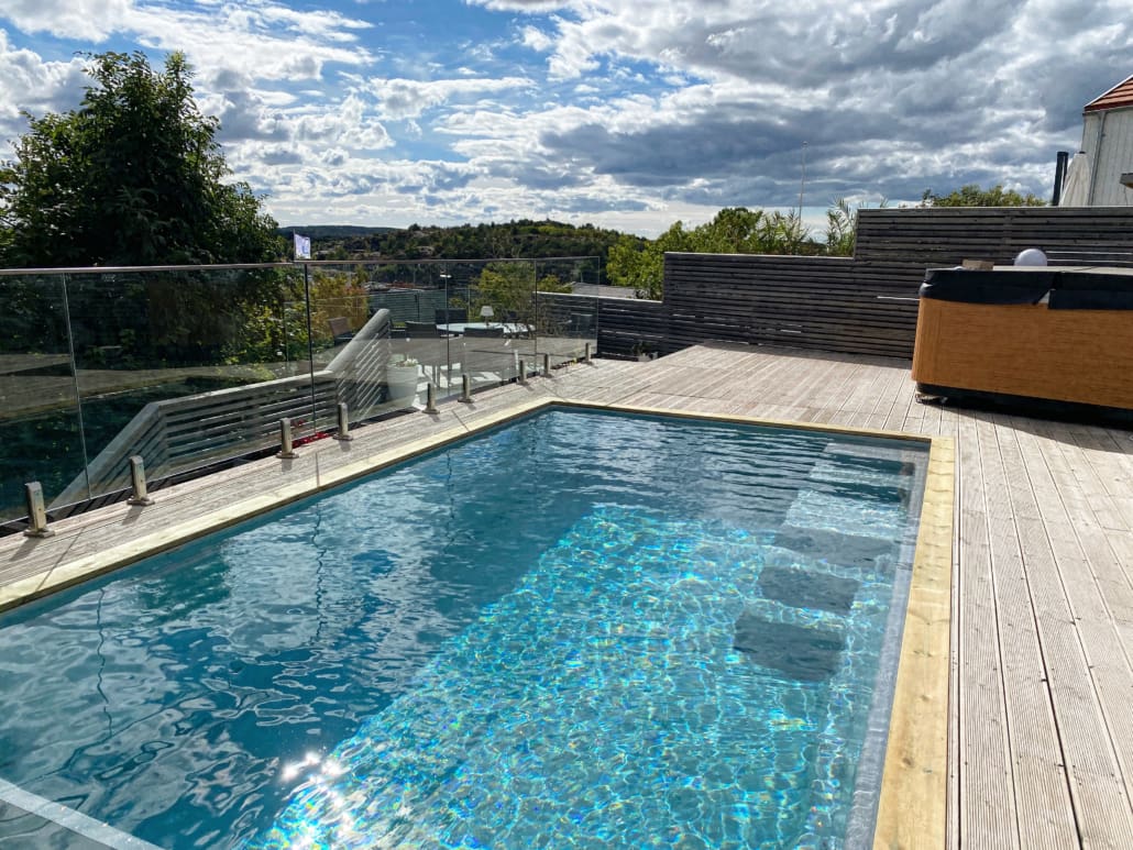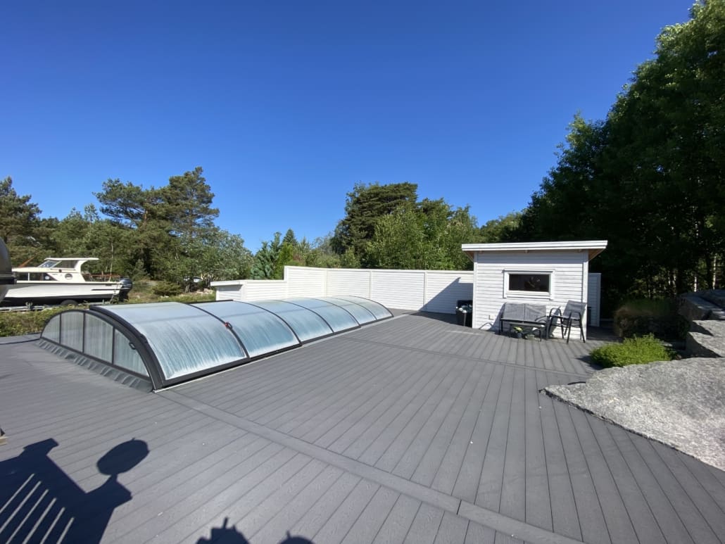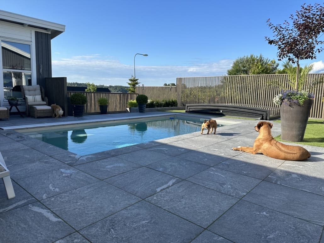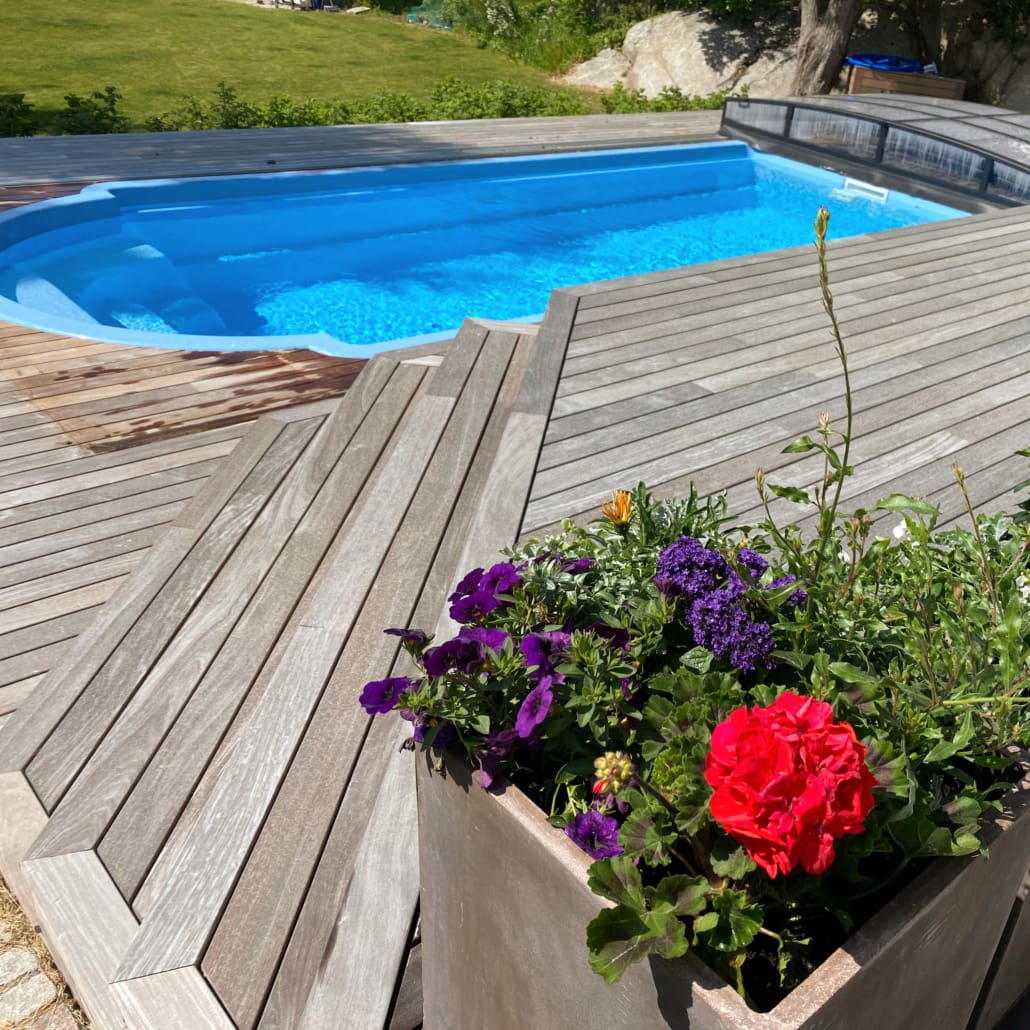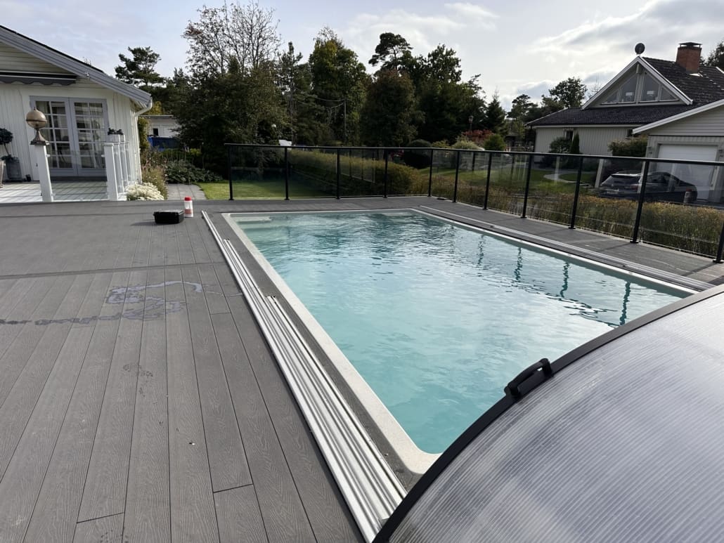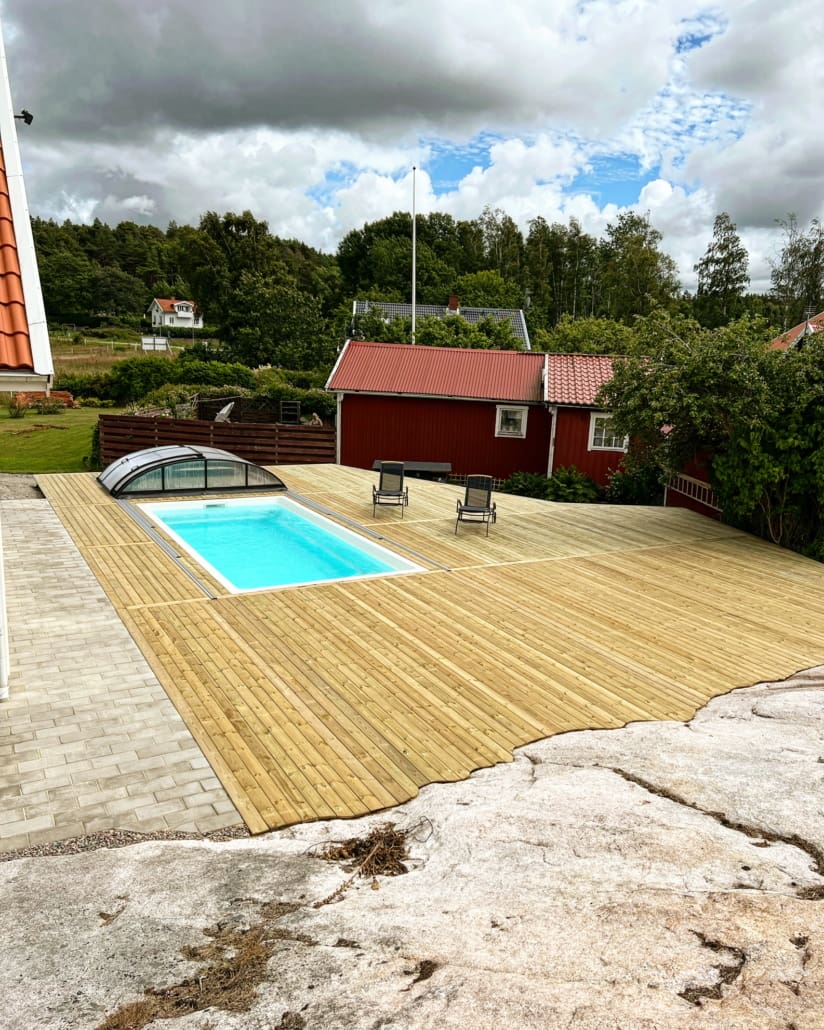 Poolområde bygger vi enligt dina önskemål av marksten, natursten, trä eller komposit.
