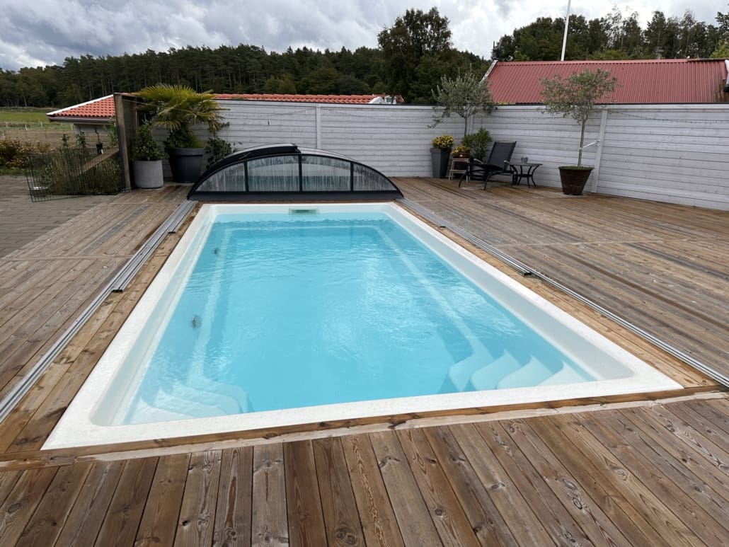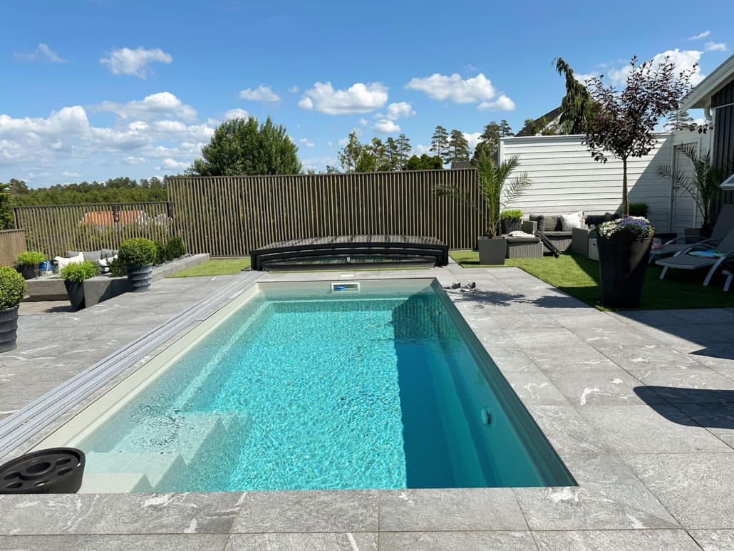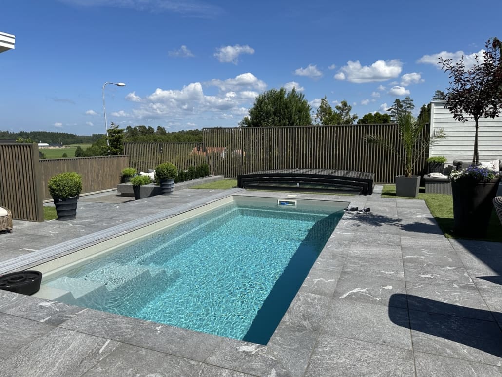 Vi säljer och monterar pooler för både träning och lek. I poolsortiment finns klassiska familjepooler i olika storlekar och vackra pooler med svängda former. I det stora sortimentet kan du också hitta en pool med integrerat spabad eller en pool som är över 12 meter lång. Kort sagt: vi har en pool för varje trädgård. Vi säljer även pooltak som vi rekommenderar till alla våra poolköpare för att det har många fördelar såsom säkerhet, hygien, håller värmen, förlänger säsongen, vinterskydd m.m.